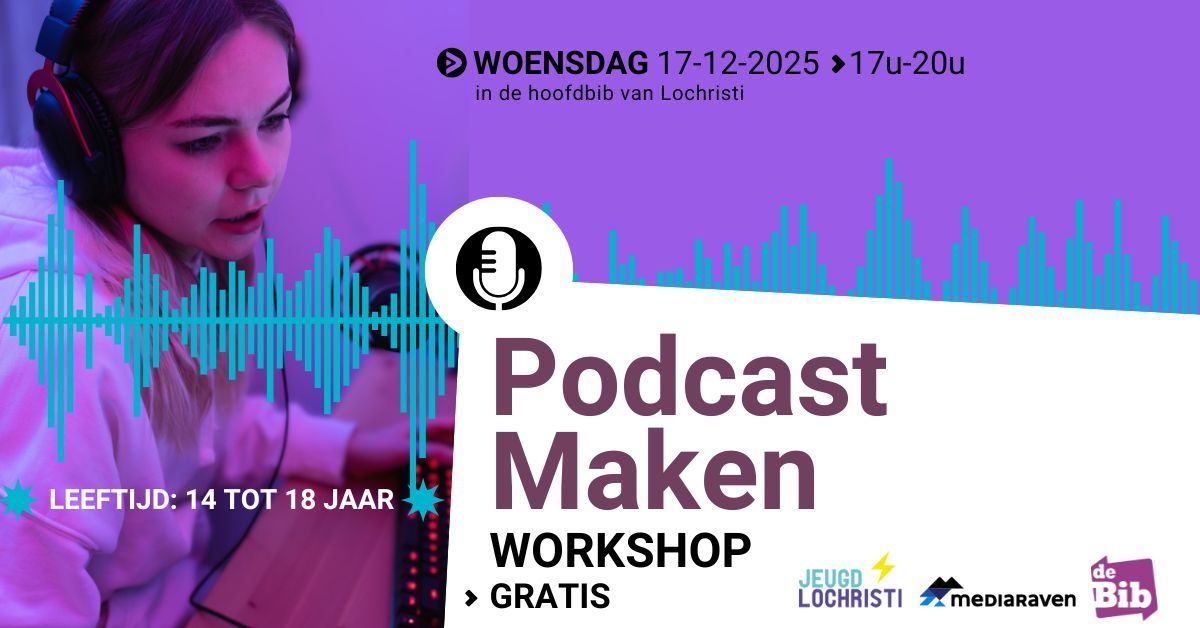 Het team van Mediaraven gaat samen met jullie aan de slag om je eigen podcast te maken! We hebben plaats voor 15 personen! De workshop is bedoeld voor 14- tot 18-jarigen