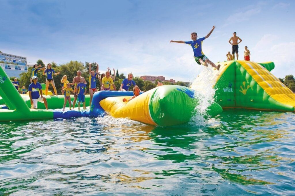 - Aquapark: Ervaar de spanning van onze enorme opblaasbare hindernisbaan op de vijver! Daag jezelf en je vrienden uit om zo lang mogelijk uit het water te blijven. Durf jij het aan?